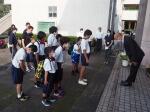 学校での出発式 保護者のみなさん、見送りありがとうございました。