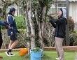今日の1校時は、中庭の木を剪定するなどの作業に取り組みました。