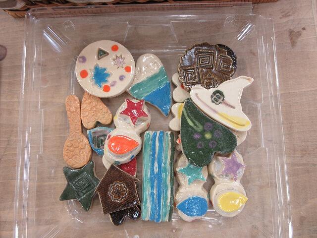 素焼きしたものに色を塗りました