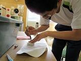 素焼きしたものに色を塗る工程です