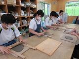 心のバリアフリー(県教育委員会の事業)で、高千穂高校の生徒さんと先生方と窯業(ようぎょう<焼き物づくり>)を通して交流しました
