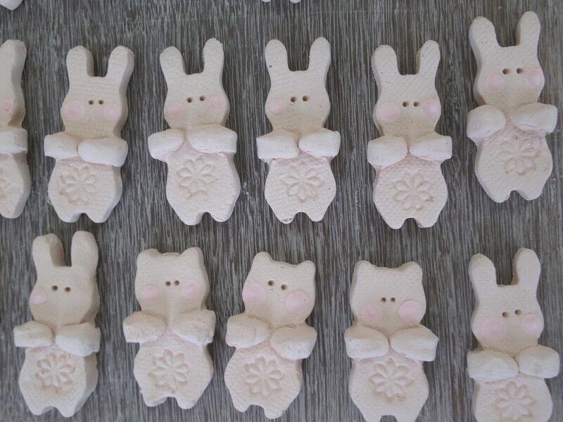 かわいいでしょ! これに「釉薬(ゆうやく)」(うわぐすり)をかけて焼いていくんです。