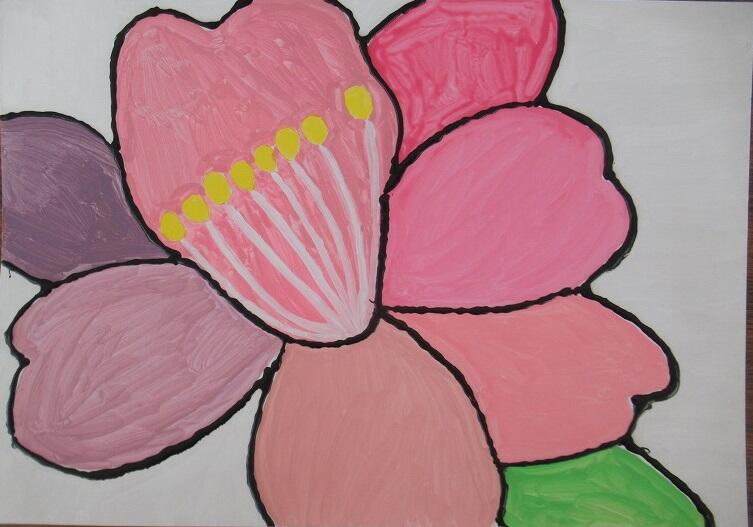 「ピンクの色を、うすくしたり、強くしたりと 工夫しながらぬりました」