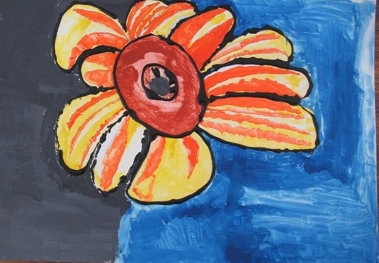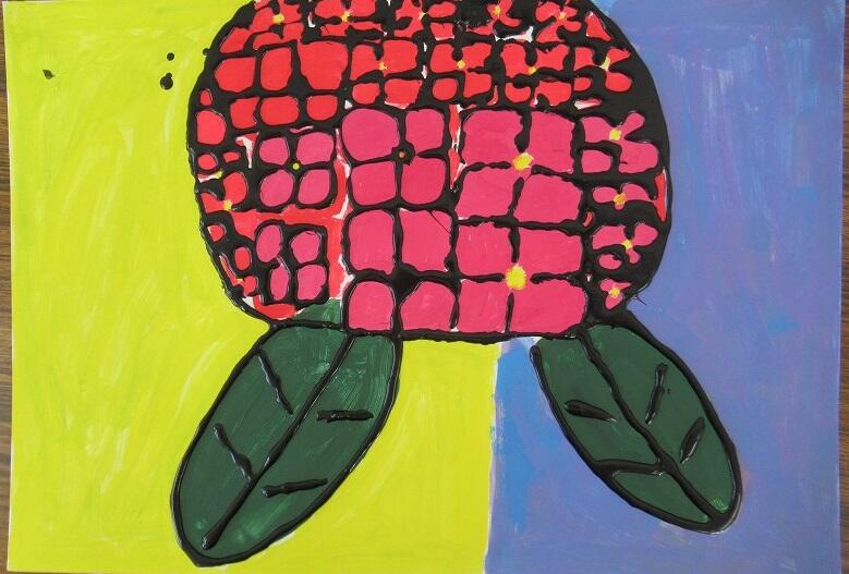 「背景を塗るのに迷ったけど、いい色にぬれて良かったです。花から ぬるのが 難しかったけど、上手くぬれて 良かったです」