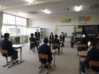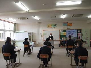 高千穂高校の全校集会に参加しました。リモートで高校の全クラスに配信されました。