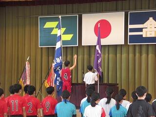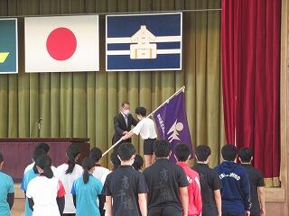 高千穂高校の校長先生から、校旗の授与。