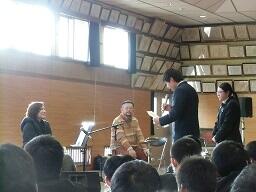 12月14日(木)に延岡しろやま支援学校高千穂校体育館において、シンガーソングライターとしてご活躍中の真北 聖子さんをお招きして、「心のバリアフリー事業」を行いました。
