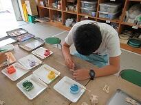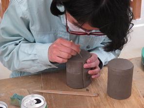 空き缶に粘土をまきつける所が一番大変だったようです。また、底をつけて、缶を抜いた後、飲み口の部分を口触りがいいようにつぶす所も、力加減が難しかったようです。