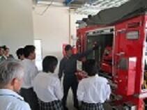 10月17日、西臼杵広域行政事務組合消防本部に庁舎見学に行きました。普段はなかなか見ることができない最新の設備に生徒も職員も興味津々でした。