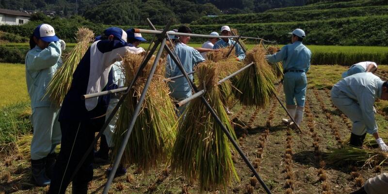平成26年12月3日水曜日に、高千穂高校の生産流通科の3年生と脱穀・餅つき交流を行いました。