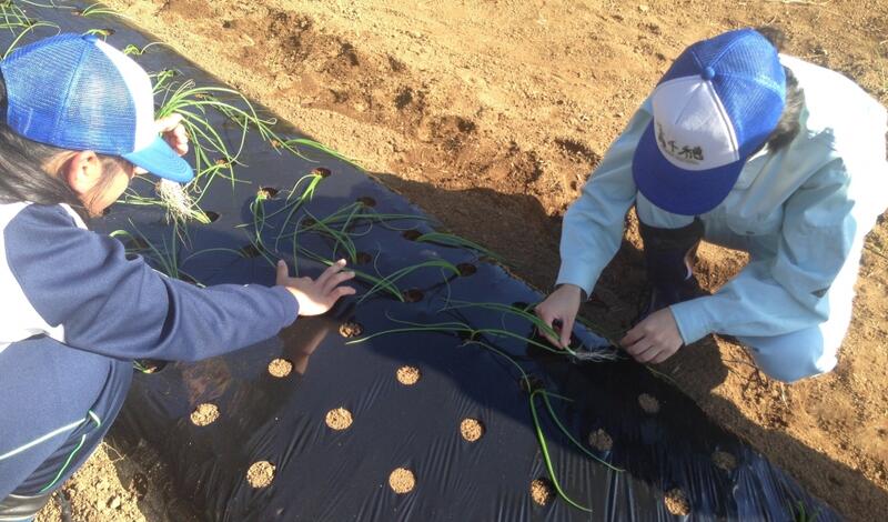 11月4日(水)の5・6時間目に宮尾野農場で、高千穂高校の生産流通科の3年生と一緒にタマネギの苗植えをしました。