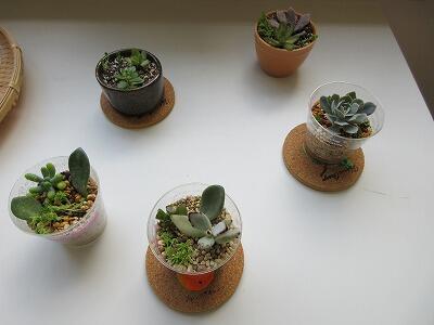 家庭で不要となった湯呑茶碗に穴を開けて多肉植物を植え、よみがえらせました。