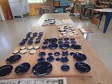 まず、窯業の本焼きのため、釉薬掛けが終わったお皿などを窯に入れて火を入れる作業を行い、その後は木工作業に取り組みました。