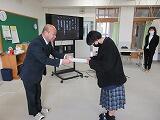 しろやま高千穂校生徒、折り紙を受け取って「分かりました。あずかります!」