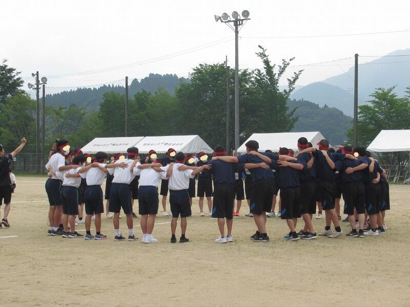 高千穂高校の仲間に駆け寄る、しろやまの生徒! 中央の白い体育着見えますか?