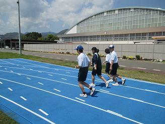 午後は、本校のグラウンドで、体育を行いました。とてもいい天気で汗を流しながら、障害者スポーツ大会の練習をみんなで頑張りました。暑かったけれど、とても気持ちがよかったです。