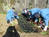 先生の話をしっかり聞いて、協力して、丁寧に植えています。