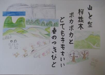 右側の表紙第1ページは、しろやま支援学校高千穂校の生徒の作品なのです!