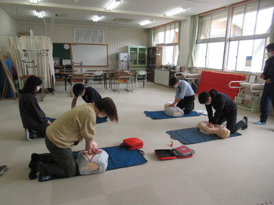 春休みの間の一コマ 先生たちの救急法講習会の様子です。