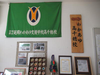 左から 高千穂高校 国旗 しろやま高千穂校 です