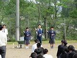 緊張しながらも堂々と自己紹介し、手話校歌(御存知のとおり校歌には手話があります)を歌いました。