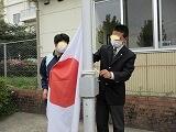 朝は、しろやま高千穂校の生徒が旗を揚げます。