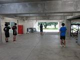 あいにくの雨でしたので、体育館下のピロティーでの練習です