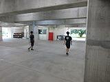 体育館下ピロティー、階段を使用して練習しました笑う