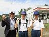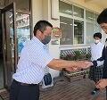 しろやま高千穂の生徒が代表として、日隈副知事から、県旗を授与されました。