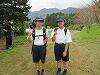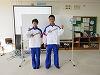 健闘を誓い、競技へ向かう顧問と選手にっこり