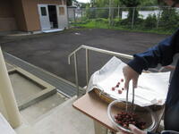 久しぶりの梅雨の晴れ間が訪れた今日、漬けていた梅を天日干しにするために外に出しました。この時期ならではの風景です。