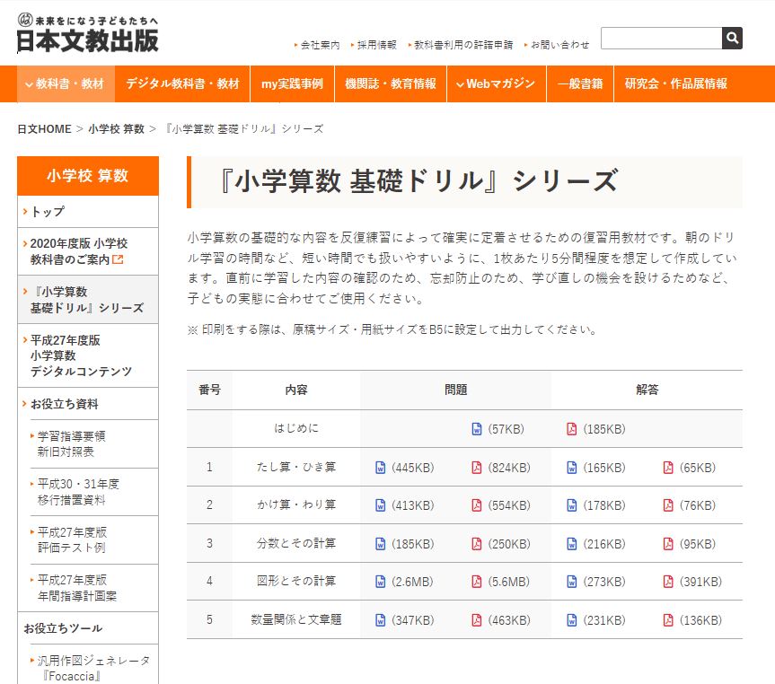 | リンク先 | https://www.nichibun-g.co.jp/textbooks/sansu/basic_drill/ |