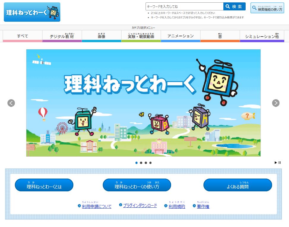 | ないよう | 小・中・高等学校向けの理科教育・学習用デジタル教材を集めたWebサイトです。 |