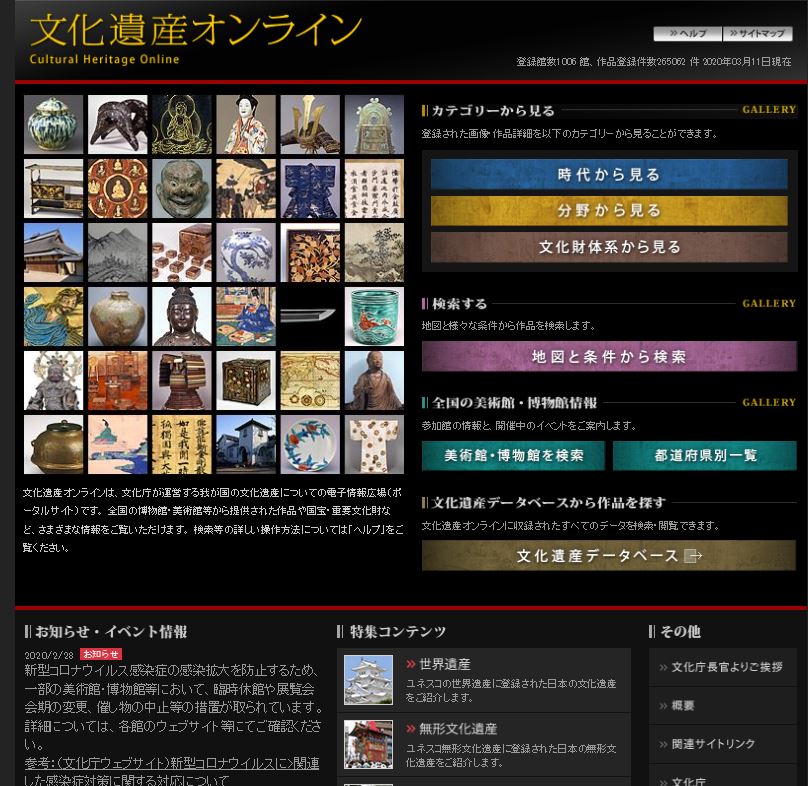 | 内容 | 全国の博物館・美術館等から提供された作品や国宝・重要文化財など、さまざまな情報をご覧いただけます。 |