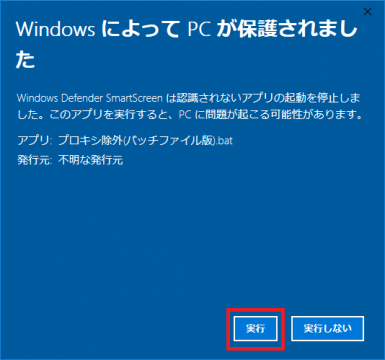 ※実行時に以下の画面が表示されることがあります(Windows10)。「詳細情報」を押して、「実行」とクリックしてください。