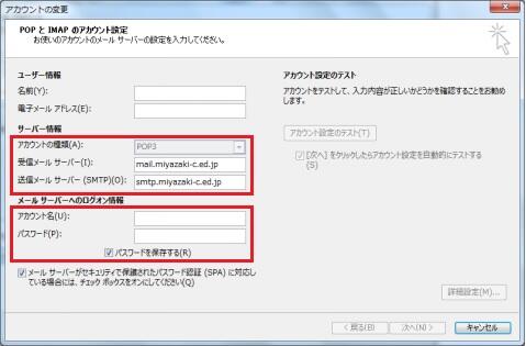 ・受信メールサーバー(POP3)・・・「mail.miyazaki-c.ed.jp」