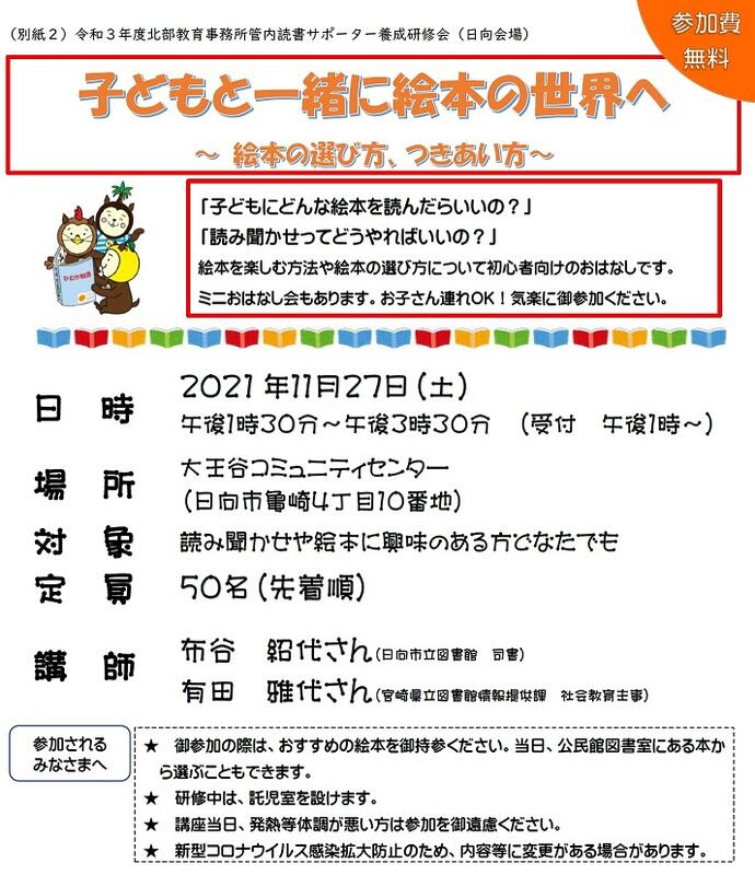 令和3年度読書サポーター養成研修会(日向会場)【お知らせ】