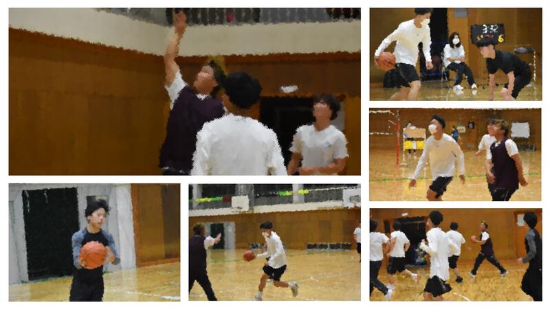 本校男子バスケットボール部は生徒数が減少している中にあっても、連続で大会に出場をしています。今年度から上久保先生と西久保先生の指導のもと、部員数10名でがんばっています。放課後の限られた時間の中でもせいっぱい。大会でも、今の自分たちの全力を出し切りたいと思います!!