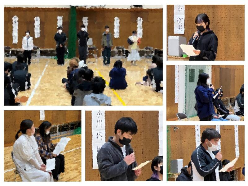 卒業年度生が今までの自分の体験・思い出をつづる、校内生活体験発表大会です!!日ごろなかなか心に移りゆくよしなしごとを語ってくれない生徒達が、卒業を前にして意外にアツく語る。それが校内生活体験発表大会。