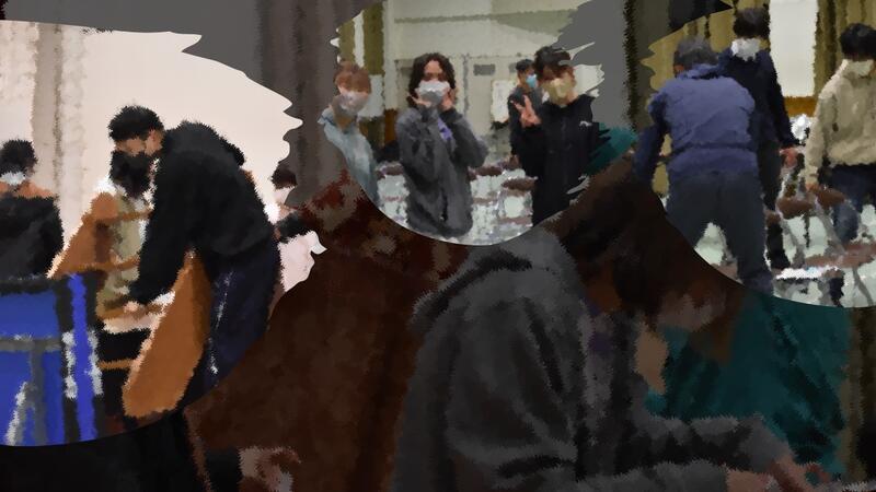 上坂団長と東郷団長が色決めのくじ引きをして、上坂団長率いるA団が赤団、東郷団長率いるB団が白団となりました。