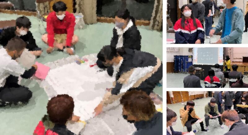 感染症対策ということもあって、距離をとってのグループ○×クイズ。初対面ということもあって新入生は緊張しているようでしたが、在校生たちが気さくに話しかけて緊張を解きほぐしている姿が印象的でした。