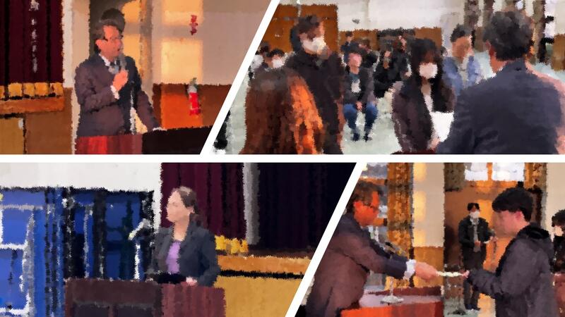 今年度は二部編成にしまして、第一部は本校卒業生にお越しいただき、在校生に向けて話をしてもらう「卒業生が語る会」。今年は令和二年度卒業生の川井田健二さんと、令和三年度卒業生のシェルザード・アリジャンさんをお呼びして、在校生に向けてのアツいトークをしてもらいました。