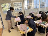 令和7年12月15日(月)の1Aと2AのCtimeで、ALTのジャッキー先生、エリクシス先生と一緒にクリスマスレッスンを行いました。今年の8月に来られたJacky(ジャッキー)先生はオーストラリア出身で、南半球のクリスマスの季節は夏であること、サンタクロースの格好をしながらサーフィンを楽しむことなども自己紹介の時におっしゃっていました。今回は、Ginger Bread(ジンジャーブレッド)と呼ばれるクッキーにアイシングの模様をつけて、クリスマスカードとともに贈りあう文化を紹介してくれました。ジャッキー先生が作ってくださったジンジャーブレッドにかわいい模様をつけて、楽しむことができました。クリスマスカード作りでは、エリクシス先生が英文の書き方を一緒に考えてくれました。We wish you a Merry Christmas and a Happy New Year!