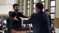 その後、義勇会館にて修了式を行いました。修了証書授与式では、1年生40名、2年生40名全員が無事に各学年の課程を修了することができました。その後、生徒を代表して、坂元希成さん、増田陽さんが3学期の反省を述べました。「学校での休み時間の使い方がよくなかった」「この生活への慣れから少しずつ誘惑に負けて勉強をおろそかにした」などの課題を解決するために、4月からは気持ちを新たに頑張りたいと述べていました。教頭先生の話では、WBCの栗山監督の著書のタイトルにもなっている、幕末の武士 橋本左内の「稚心を去る」という言葉を紹介し、子供っぽい心を捨て去り、4月に入学する後輩たちの手本として、本校の校訓である質実剛健を目指してほしいと話されました。
