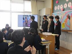学級に戻り、3年生は最後の学活です。実行委員が楽しい企画を考え、笑いがたくさんある最後の学活となりました。