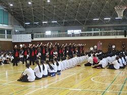 11月1日(土)、山田体育館で、男女バスケットボール部1年生大会が開かれ、都北・西諸の中学1年生が熱い戦いを繰り広げました。本校からは男女とも出場しました。男子は、高崎中学校・祝吉中姫城中合同チームと戦いました。中学校に入学して約半年間頑張ってきた成果を出し、一生懸命戦いましたが、惜しくも敗退。女子は、五十市中学校・高城中祝吉中合同チームと戦いました。女子の1年生部員は4名のため、他の部活動から3名出場してもらい、7名での戦いです。熱戦を繰り広げ、五十市中学校には見事勝利、高城中祝吉中合同チームには惜しくも敗退しました。所属したリーグで2位となりました。応援くださった保護者の方、先輩をはじめ応援に来てくれた生徒の皆さん、ありがとうございました。今回の経験を活かし、前に進んでいきましょう。