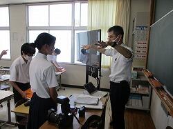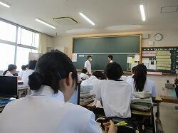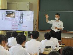 11月5日(水)6・7時間目の総合的な学習の時間に、自然科学探究出前授業が行われました。テーマは「計算科学に基づく数値解析技術の統一的構築と電気電子工学における利用技術の研究」。講師を務めてくださったのは、宮崎大学工学部の武居周(たけいあまね)先生です。とても難しそうなテーマですが、お話を伺うと、身近なところに電気電子工学を利用したものがたくさんあることが分かりました。例えば電子レンジ、IHコンロ、ドライヤー。また、交通がうまく流れるためのシステムづくりにも役立つのではないか……。これは、現在検討している内容だそうです。私たちの生活の身近なところで、電気電子工学は息づいていて、さらにもっと住みよい社会につながっていく……そんなわくわくした気持ちになりました。先生は、生徒ひとりひとりに声をかけてくださり、対話を中心に話を進めてくださいました。最後に生徒を代表して前田桜佑さんがお礼の言葉を述べました。お忙しい中、講師を務めてくださった武居先生、派遣くださいました宮崎大学に心からお礼申し上げます。ありがとうございました。