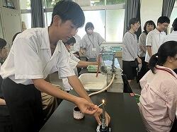 12月6日(土)午後、理科室に科学の甲子園Jr.宮崎県代表の2年生6名と1年生のサイエンス部のメンバー8名が集まり、1週間後に迫っている科学の甲子園Jr.全国大会に向けての練習を行いました。3名を基本とした5チームで、それぞれ提示されている実技課題に、時間を測りながら本番さながらに臨んでいました。なかなか難しい課題で、うまくいかないことも多々ありましたが、諦めることなく一生懸命。代表6名にとっては、残りの1週間は貴重な時間となります。頑張ってください!