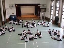 12月12日(金)午後の国語・学活の時間などを使って、今年度初の百人一首合同練習をしました。1回目の今回は1年生と3年生の合同練習です。義友会館が空いていたので会場としてお借りすることができました。1年生・3年生出席番号順の2列に並び、場所を移動して1年生対3年生で対戦できるようにしました。札を並べ、真剣な面持ちでみんな札に対峙します。一字決まりの札や「ちはやふる」「憂かりける」「このたびは」などの人気の札はあっという間に取られてしまいます。さすがに3年生はすでに2年間経験があるだけに素早い動きで札を取っていく人が多数でした。しかし、中には1年生で勝利を収めた人もいました!3年生は記録用紙の書き方も1年生に指導していました。最後に少し時間があったので、3年生からどうすればうまくなるかアドバイスをそれぞれしてもらいました。このようにして、毎年附属中全体で百人一首大会に向けて頑張っていくのです。