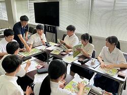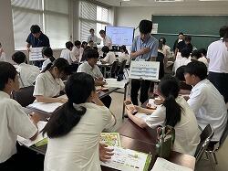 11月19日(水)の総合的な学習の時間に1回目の学習を行った1年生・キャリア探究「共生キャンバス」の学習は、11月26日(水)6・7時間目に、いよいよ中心となるオンライン学習に臨みました。「共生キャンバス」は「すべての人が輝く社会づくりを考える」ということで、「希少」であることに目を向けて考えていくプログラムです。このプログラムを提供していただいているのは武田薬品工業株式会社で、このオンライン授業の講師を務めてくださいました。前回、映像を見て、「希少疾患・難病」の現実を知り、10班に分かれて課題と解決に必要なことを考えました。この日、その中から学級の投票で選ばれた三つの班が発表しました。どの班もよく考えたポイントがあり、よい点を褒めていただきました。続いて、ワークシートを使いながら二人の希少・難病患者の例を班でどのような支えができるか話し合いました。三つの班が話し合った内容を発表しました。そして「エコシステム」について学び、考えたことをさらに発表していきました。「すべての人が輝く社会」について、オンライン授業を通して深く、広く学ぶことができました。この授業を提供してくださり、講師を務めてくださった武田薬品工業株式会社の皆様、そして、紹介・段取りをしてくださったキャリアリンクの皆様に心からお礼申し上げます。ありがとうございました。生徒たちはこれからさらに学習を深めていきます。